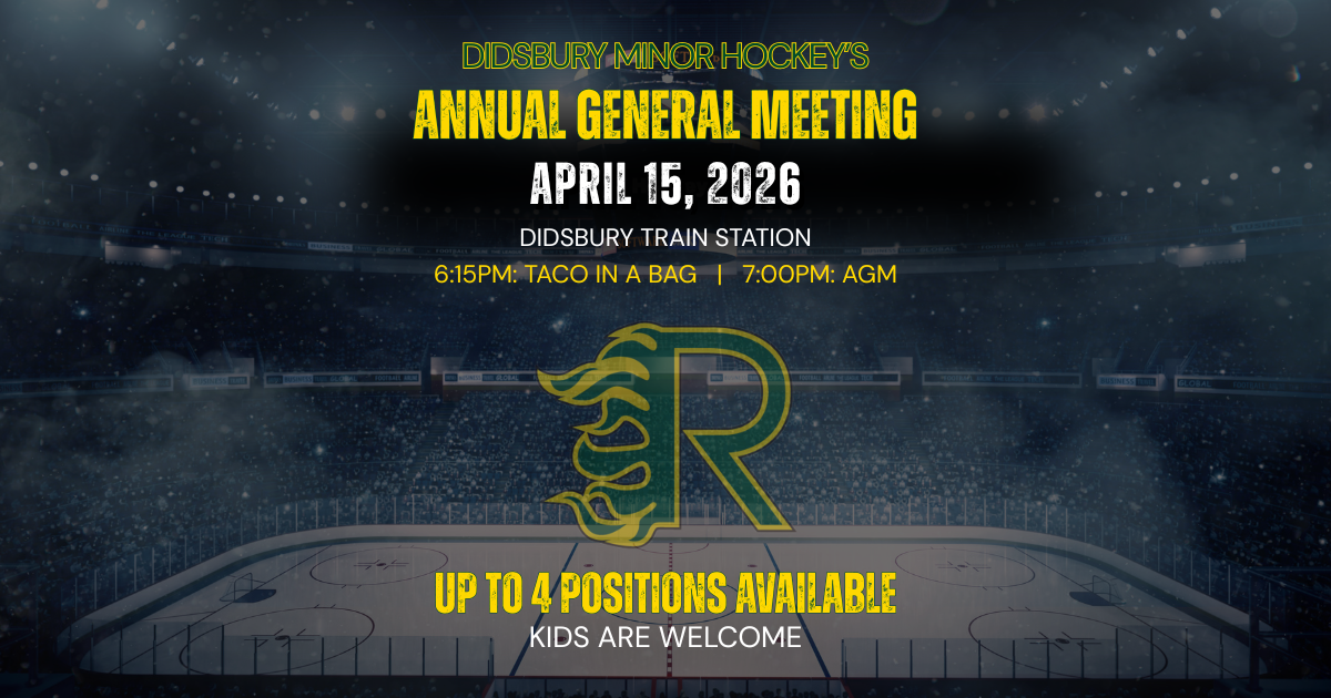 Didsbury Minor Hockey Association will be hosting its 2026 AGM on April 15, 2026 at the Didsbury Train Station. Join us at 6:15PM for Taco In a Bag AGM will begin at 7:00PM Children are welcome!